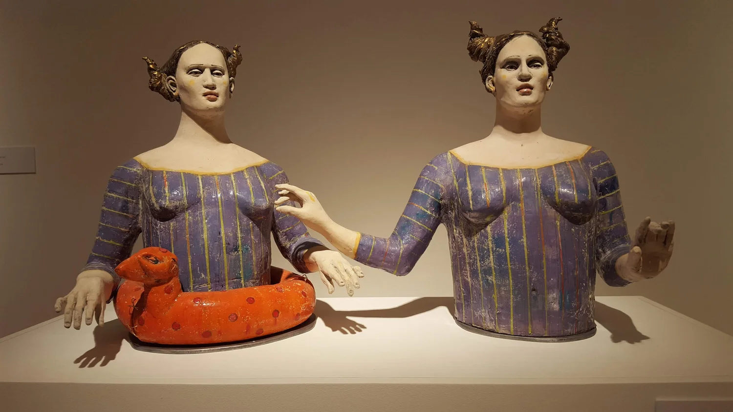 Gabrielle et Sa Soeur | Purple  Sculpture, Slab-built, figures, acid-etched  22h x w and d (variable) in