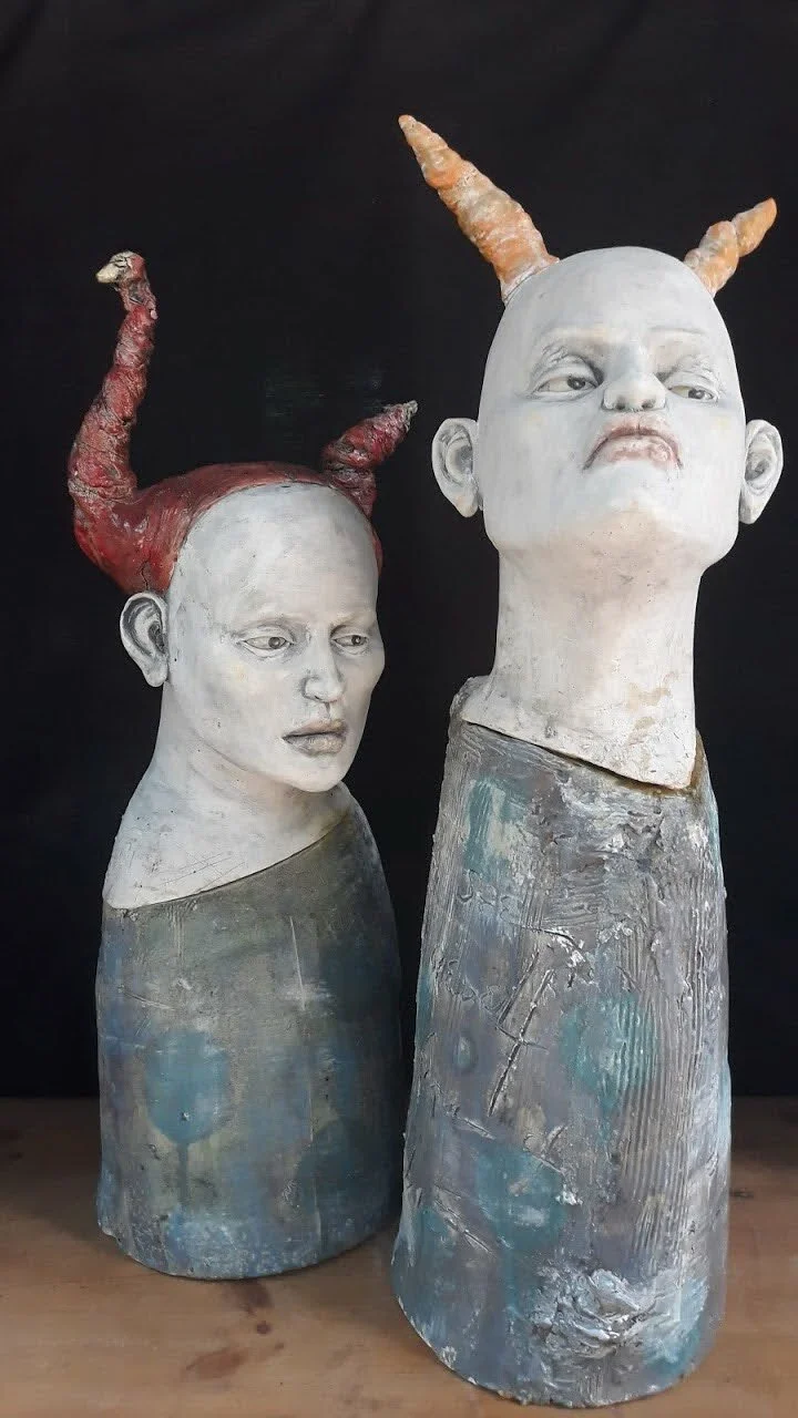 Narcissus and Echo, Lovers | They Both Love Him II  2011  Sculpture-slab built, figures, acid etched  36h x w and d (variable) in